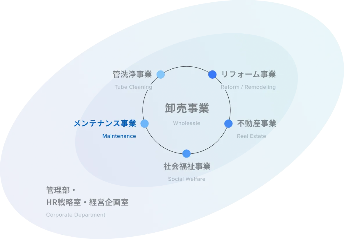 メンテナンス事業は、特定水栓メーカーの商品修理、メンテナンスを専門とし、暮らしの「当たり前」を支えるサービスを提供しています。安定した対応力と体制で、日々の暮らしをサポートしています。