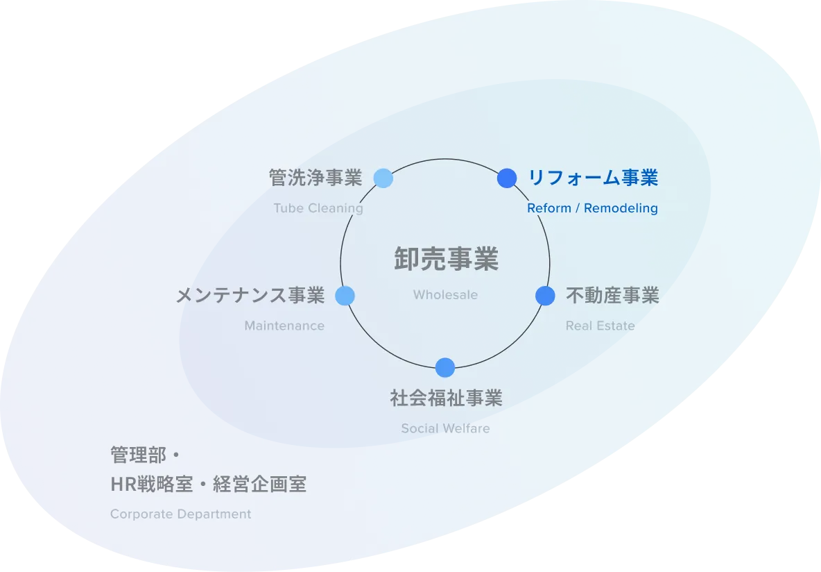 リブウェルグループのリフォーム事業は、住宅のリフォーム・リノベーションを通じて、より快適で機能的な暮らしを提供するサービスです。グループとして新たな領域、BtoCへと事業を展開したことで、グループの事業構成に多様性をもたらし、現在では主力事業のひとつとして位置付けられています。