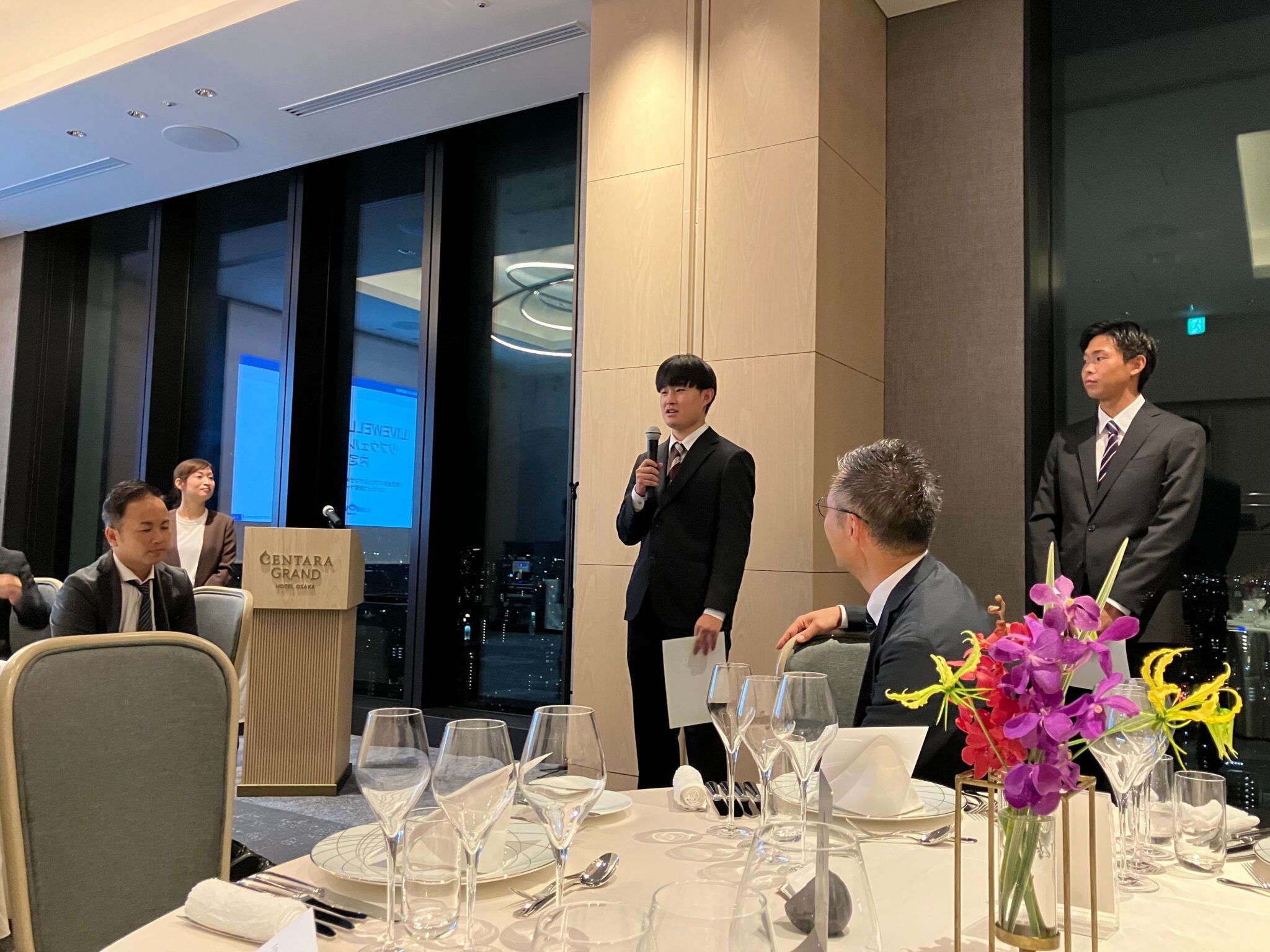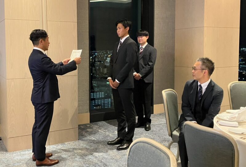 2025年10月19日、センタラグランドホテルにて『2026年度新卒採用 内定式』を実施いたしました。今年は3名の内定者のうち1名が部活動の試合のため欠席となりましたが、出席した2名と社員がなごやかな雰囲気の中で式を行いました。当日は内定者から入社への決意表明をしてもらい、熱い想いが語られました。